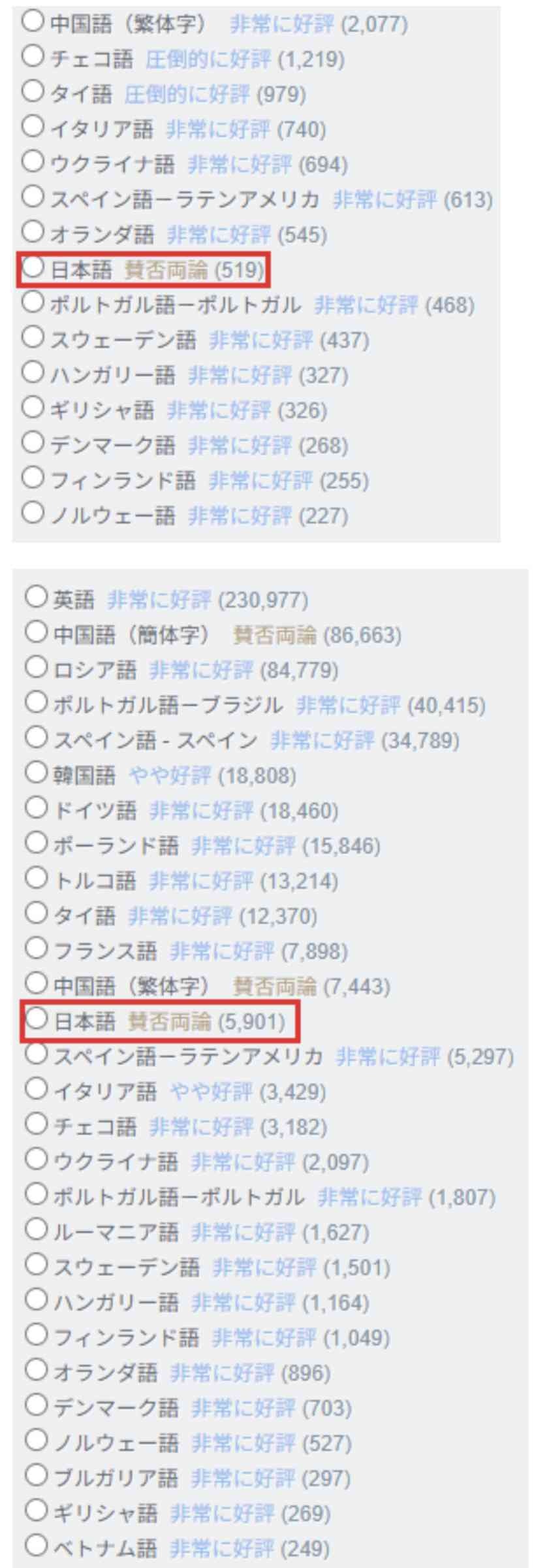 - 中国韓国もこの例だと他国よりワンランク低い評価をつけてるから東アジア的な評価と☆レーティングが合わんのやろね
