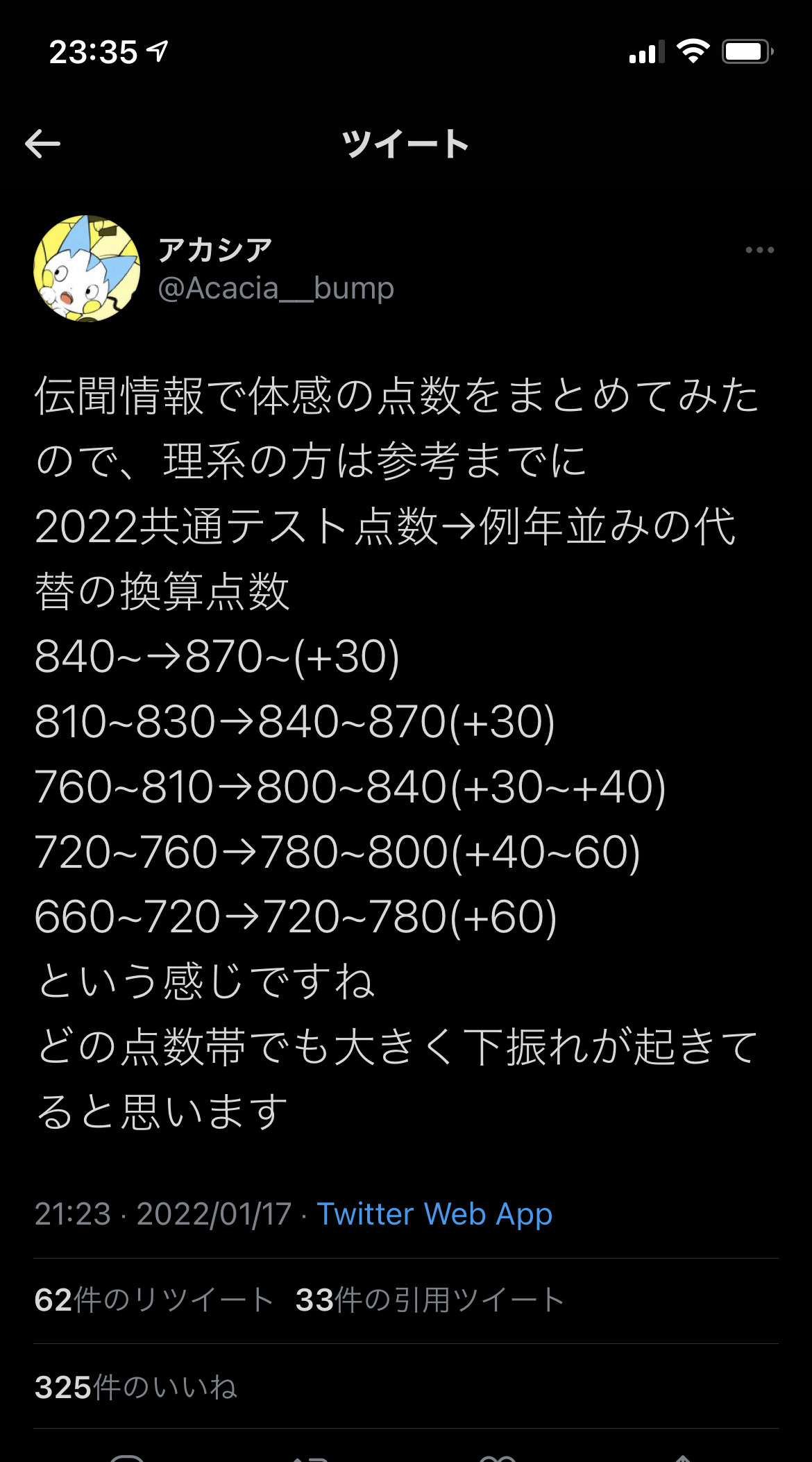 傾斜かけても69%で例年のボーダー-10%や - 63 : 2022/01/17(月) 23:55:34.59 ID:vKBy188s0