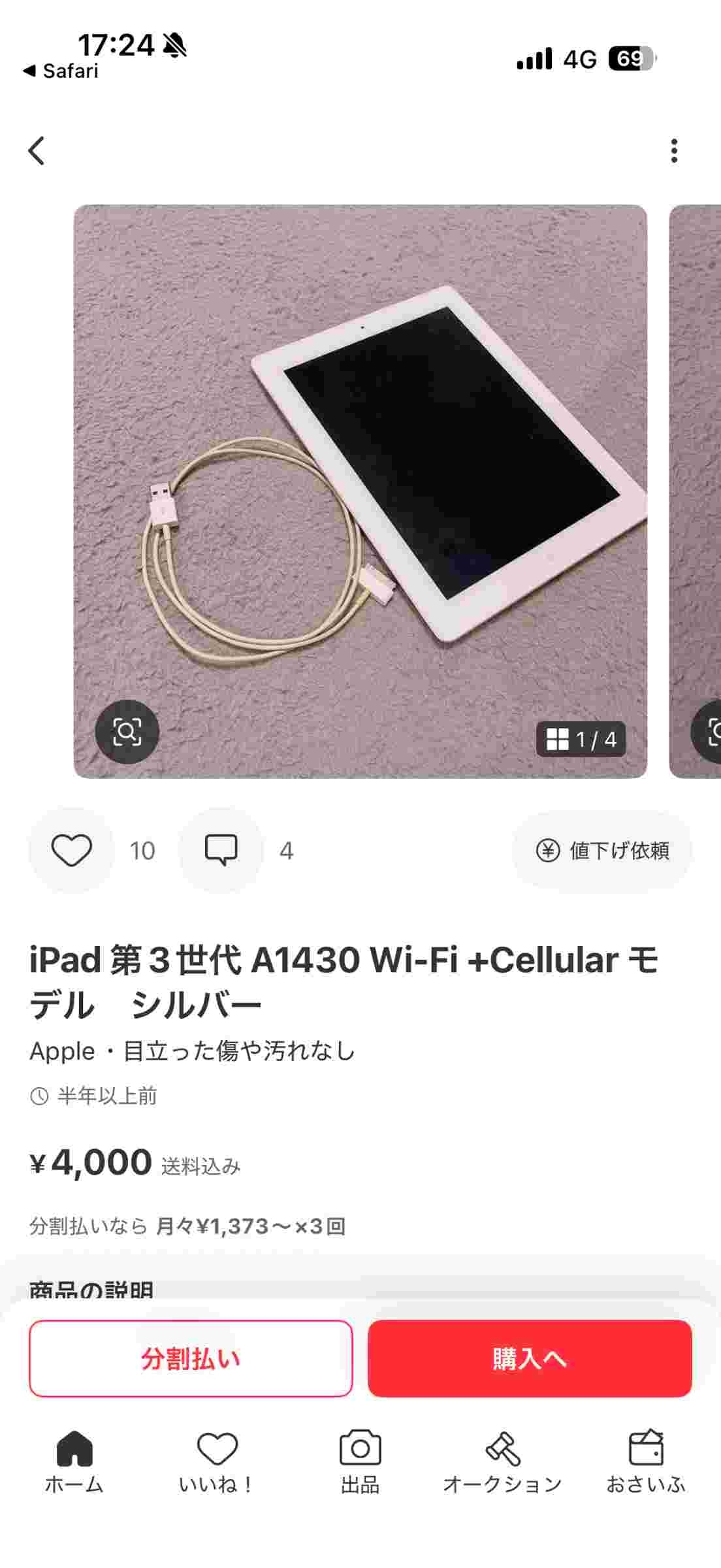 ホームボタンがあるタイプのiPadで、なんか大きい充電器(刺すところが2センチくらい?)の型の古いヤツでやってた