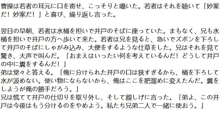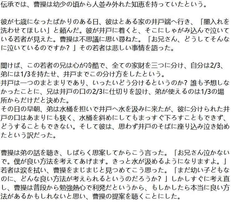 - 本当かどうかはわからんが曹操らしいずる賢さだから違和感ないよな