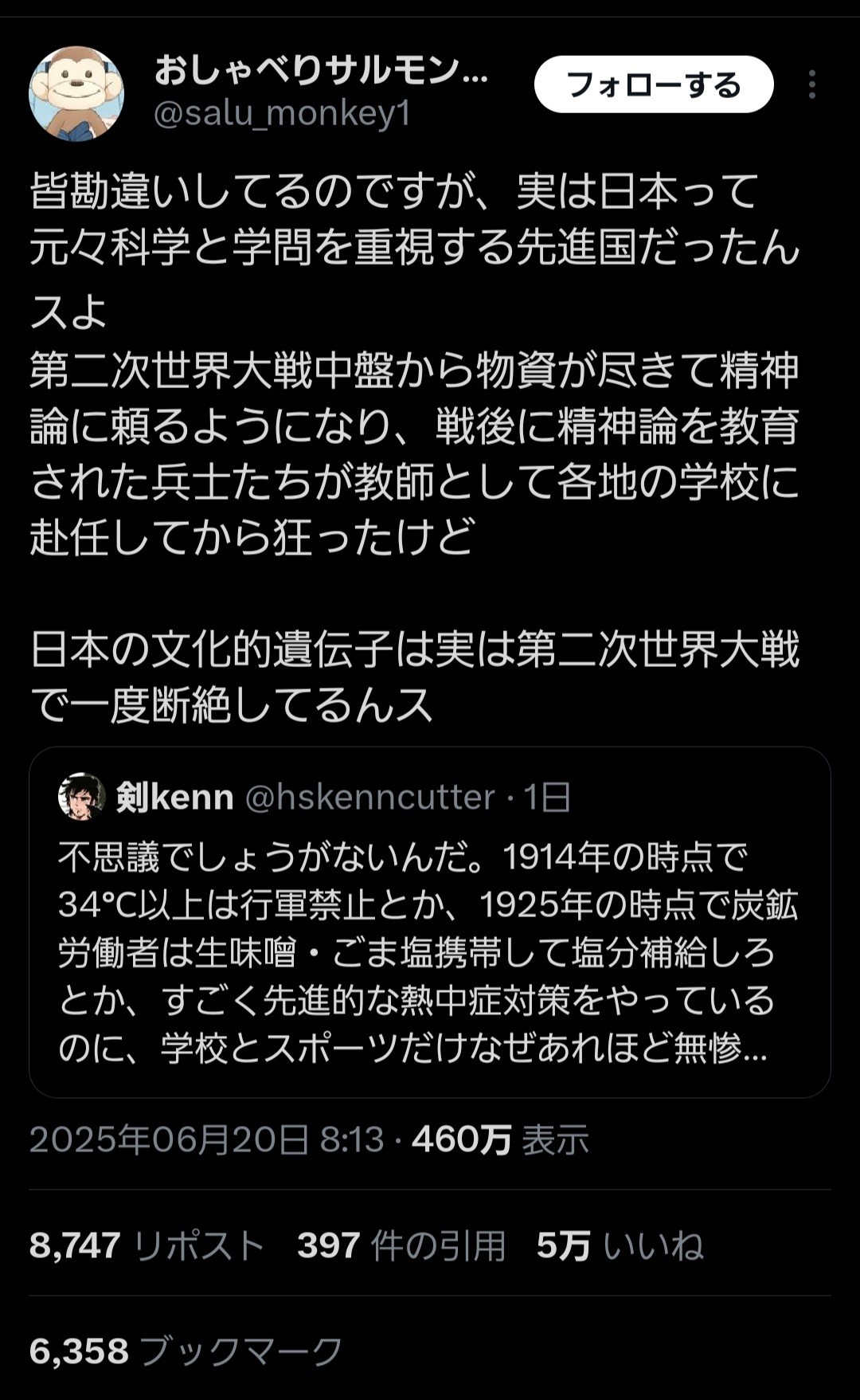 有識者「日本は元々科学立国だったが、WW2で狂って精神論に頼りすぎた結果、文化的遺伝子が完全に破壊された」5万いいね