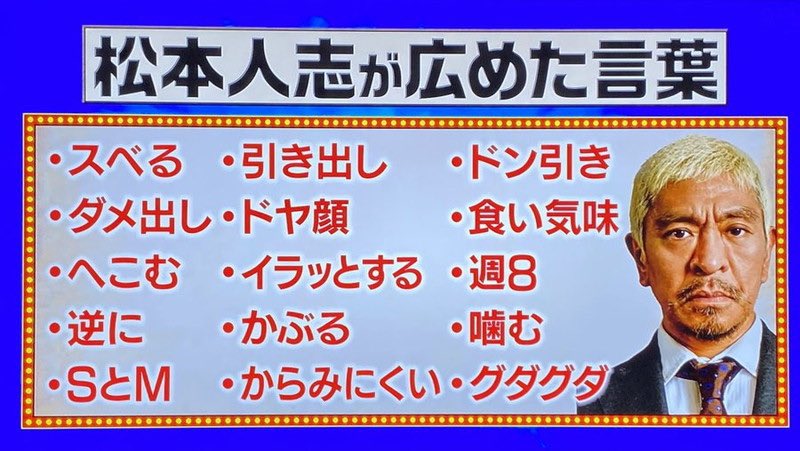 - 天丼とかも松本が電波少年かなんかで使ってから真似して使うやつ増えたイメージ