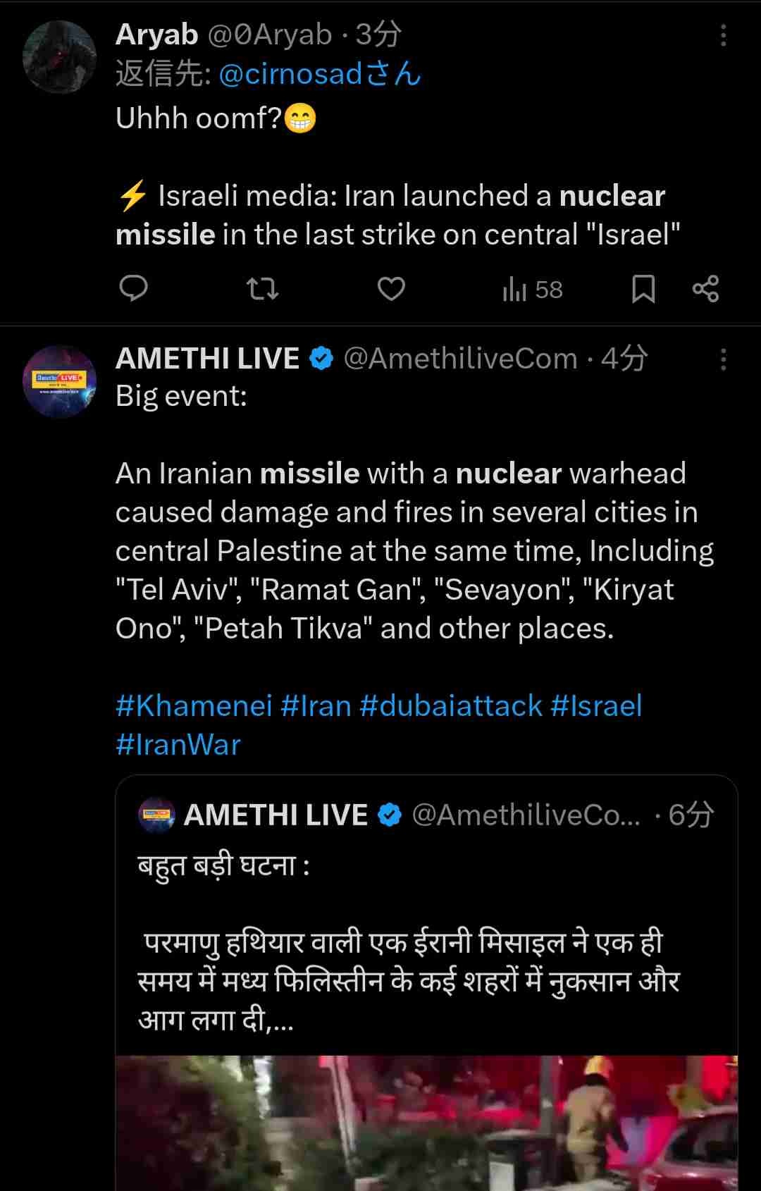 - 核施設破壊されたのをイランの核ミサイル攻撃だと主張して