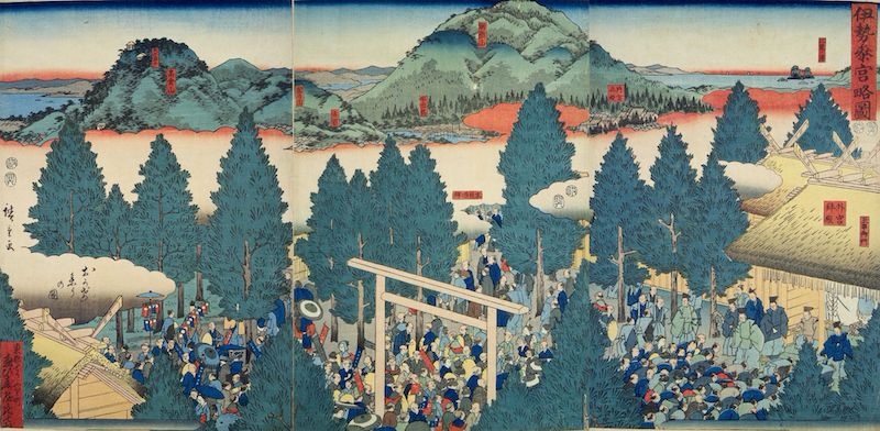 - お伊勢参りが人々に浸透したのは江戸時代で、多いときには年間400万人以上(当時の人口の約6分の1)が参拝しました。