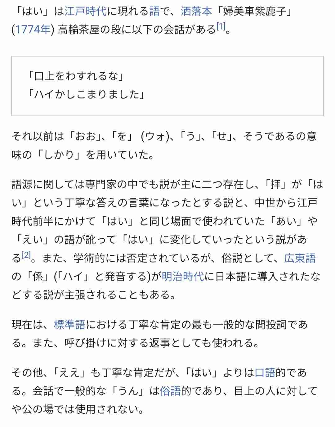 - 「はい」が現れたのは江戸時代