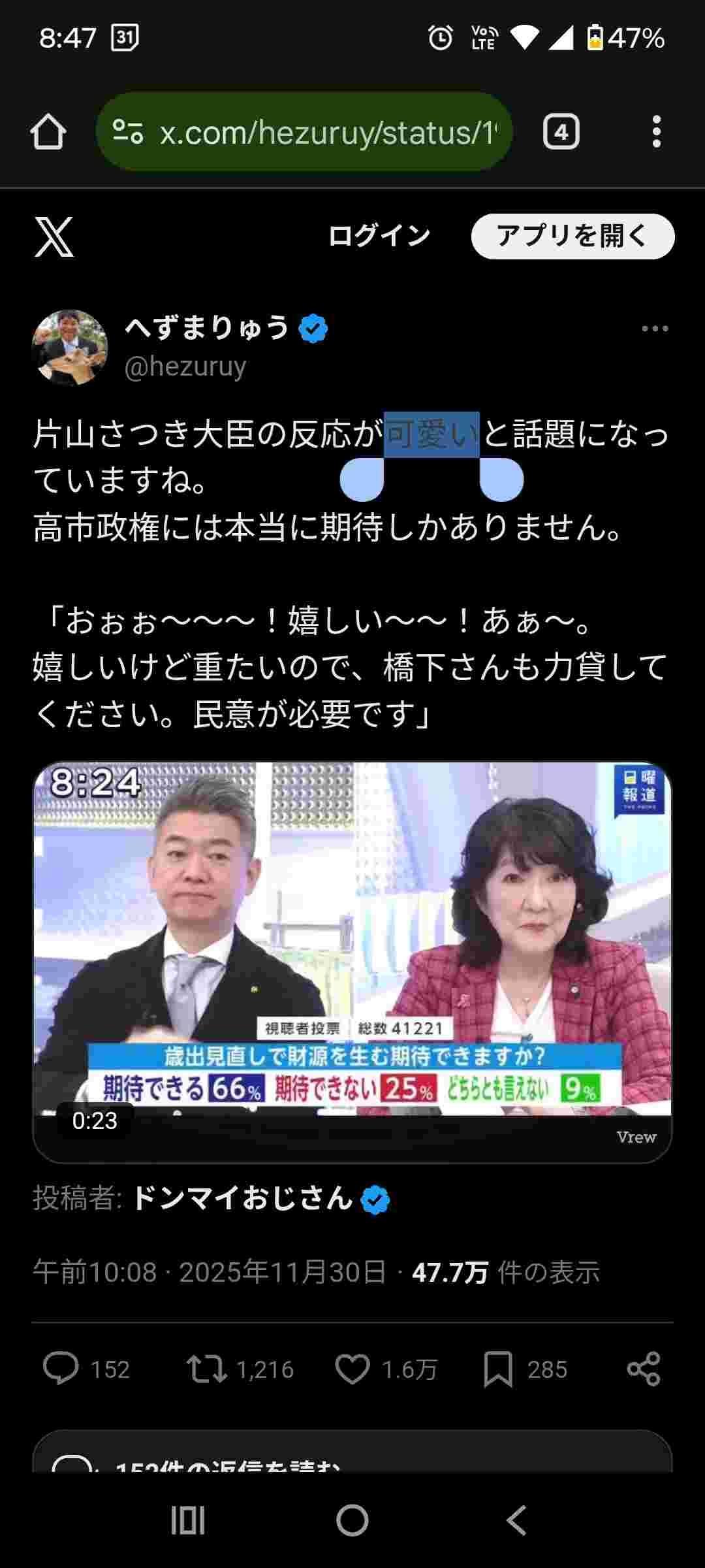 - 可愛いなんてとんでもない、政治資金パーティーの件を考えたら全部言い過ぎだろ