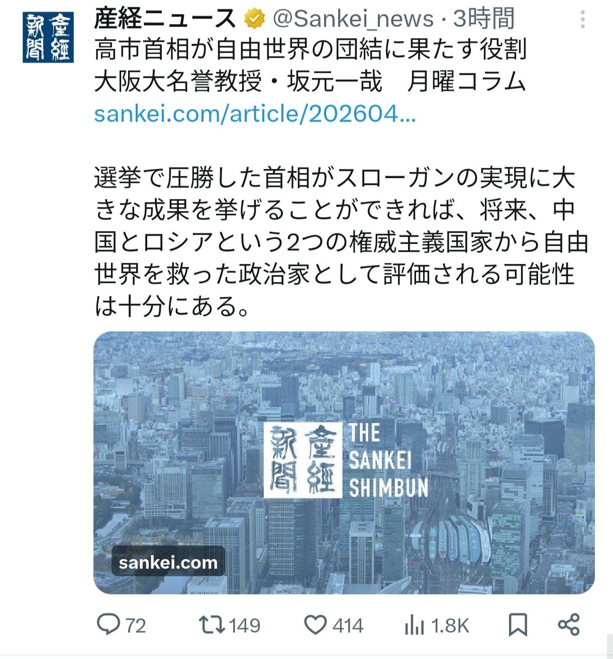 産経新聞「高市早苗は救世の英雄となる」🕺