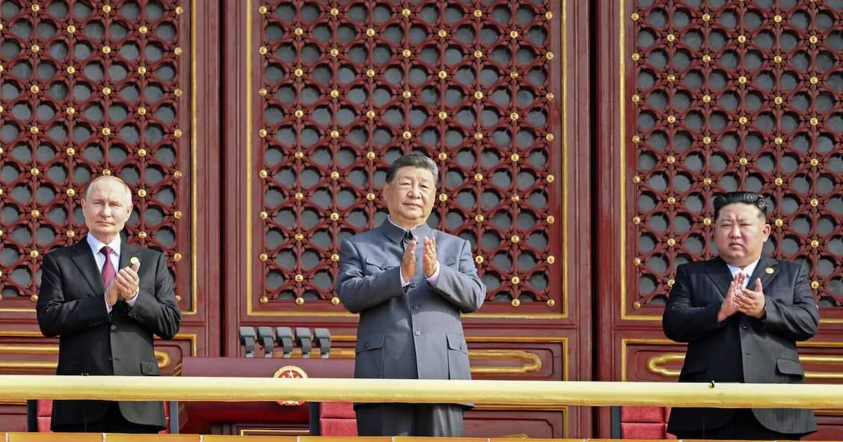 - 皆さま、ごらんになられましたぁ…中国・北京で3日にやった「抗日戦勝80年」とコイたパレードに集まった面々。中国の習近平国家主席が両脇にプーチン露大統領、北朝鮮の金正恩〝3代目〟を従えたとこ。