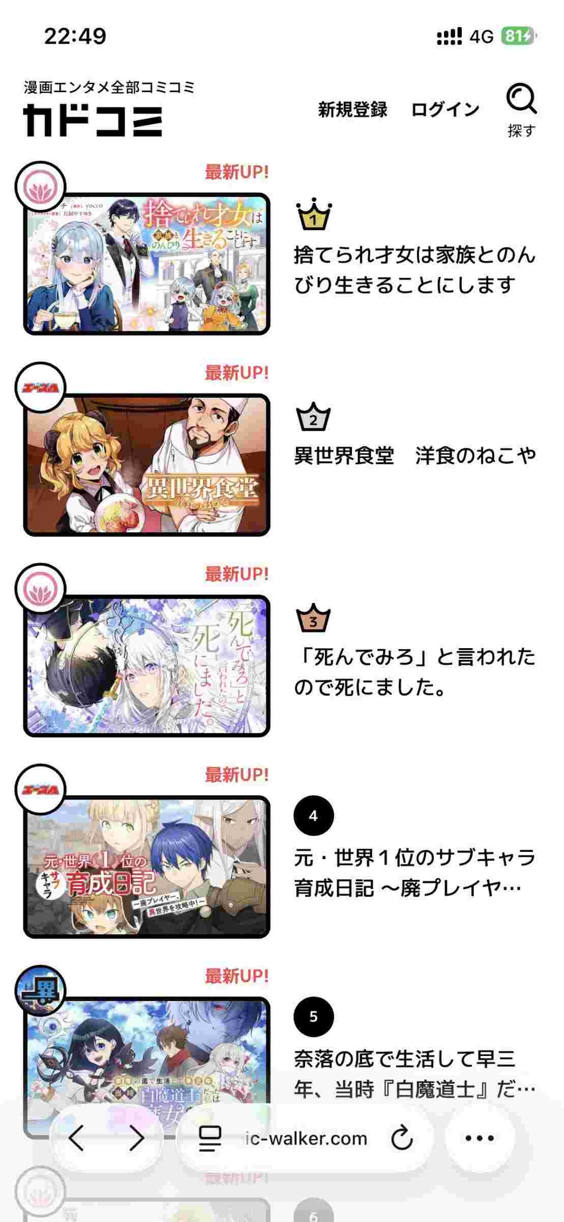 異世界・転生漫画ランキング|カドコミ (コミックウォーカー)今話題の異世界・転生漫画をチェック!comic-walker.com- 2 : 2025/10/02(木) 22:53:43.05 ID:bZe45dz40