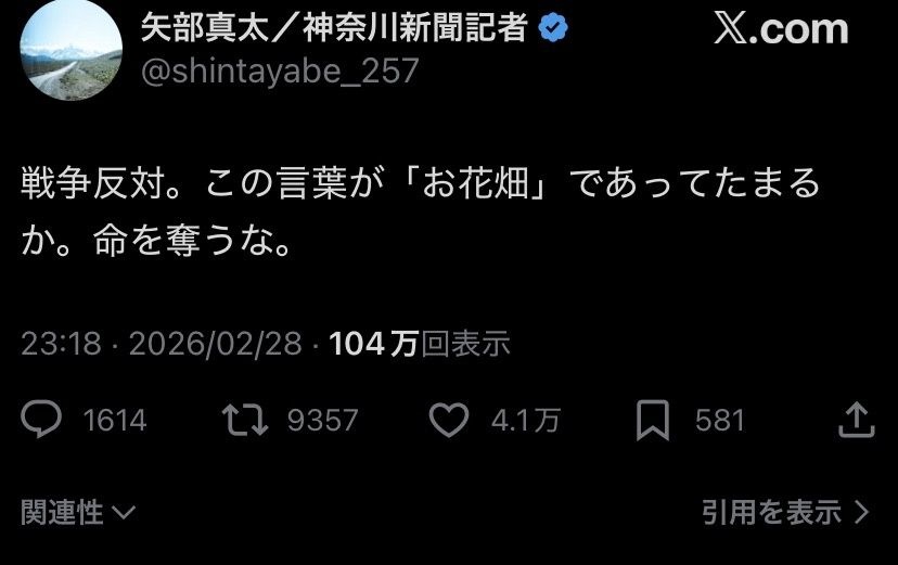 神奈川新聞記者「───戦争反対。この言葉が「お花畑」であってたまるか。」