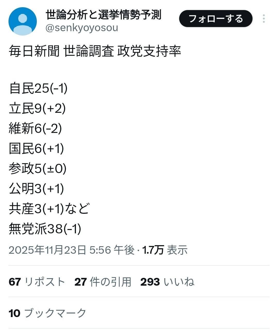 公明も微妙に上がってんだね - 32 : 2025/11/23(日) 20:08:28.93 ID:rSQLLlyP0