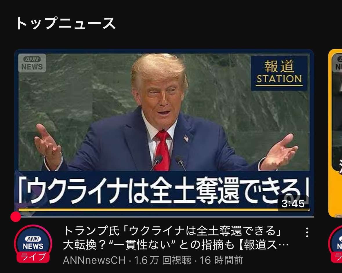 トランプ「はいっ!えー…ねっ、そういうわけでね、ウクライナ全土奪還ということになったわけですけども…」 - 35 : 2025/09/25(木) 18:40:31.38 ID:9ejM1Ocm0