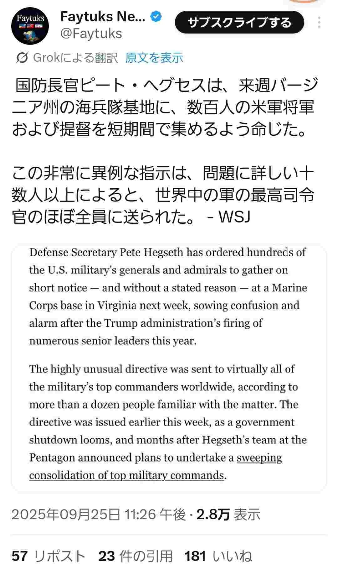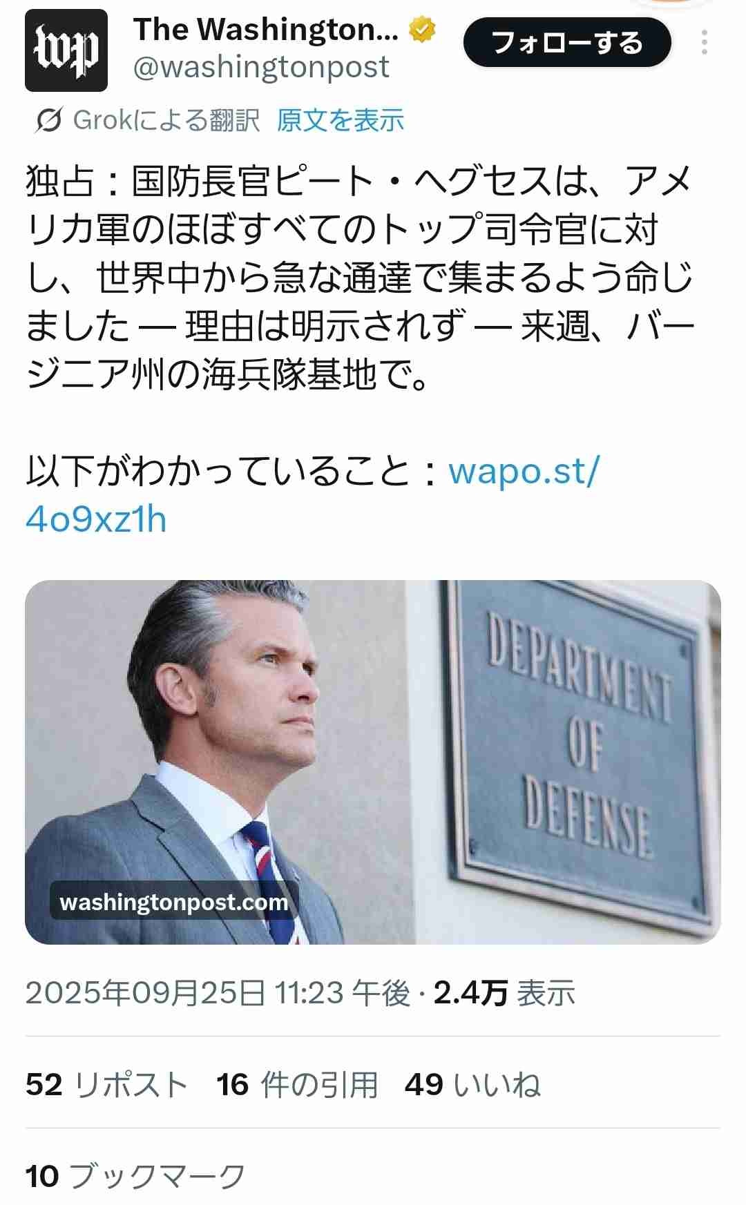 - なお理由は不明https://x.com/washingtonpost/status/1971218929470103634x.com