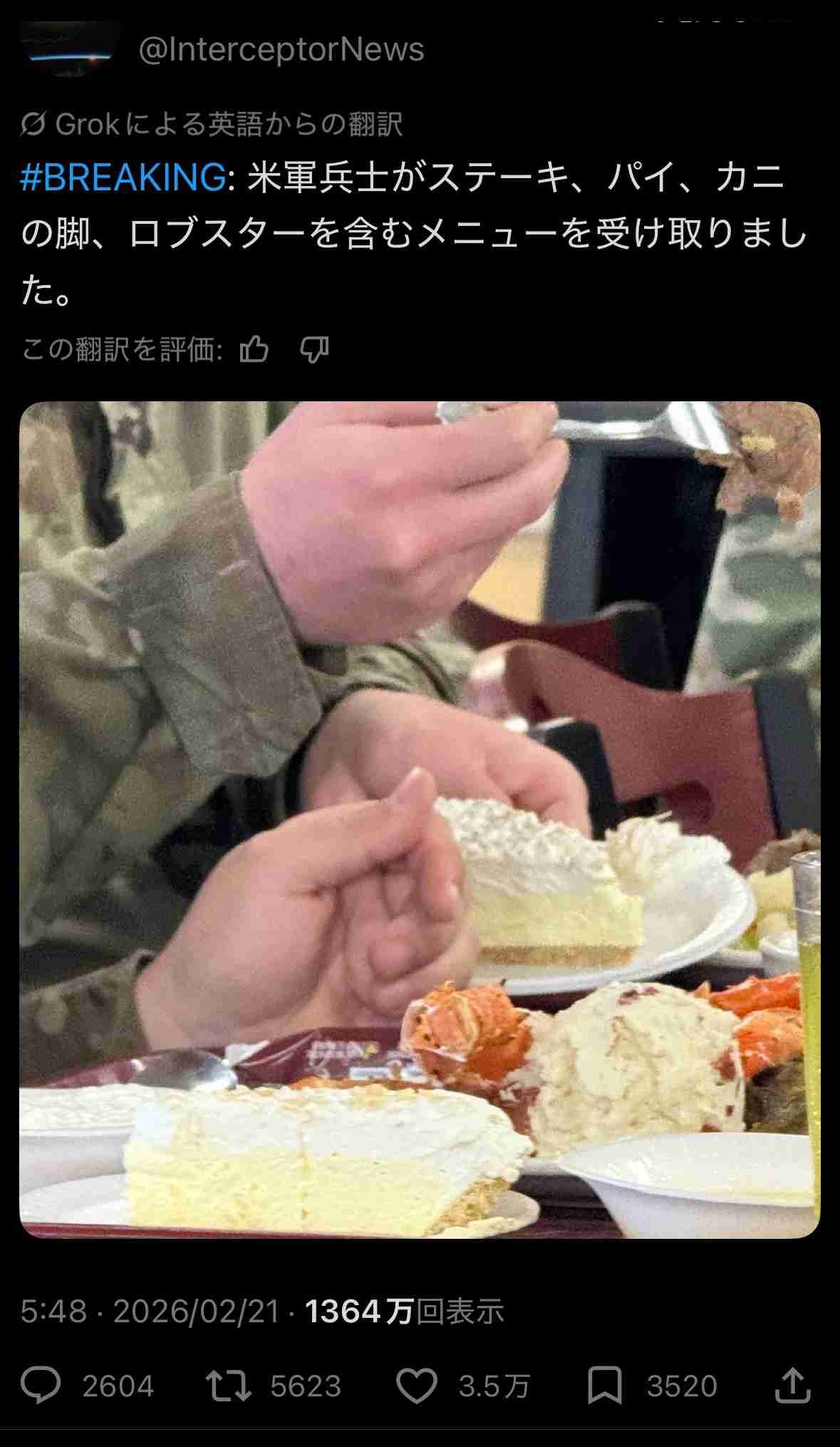 あいつらいつもステーキとかパイとかロブスターとか食ってるやろ - 258 : 2026/02/21(土) 18:00:52.546 ID:Q29G8mOg6