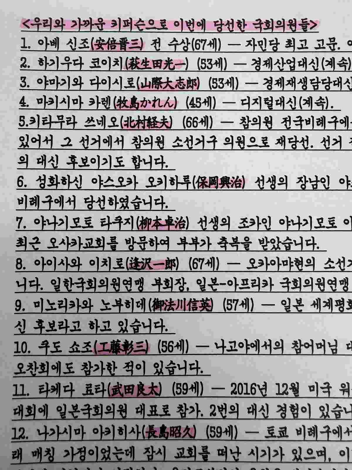 から詳細な報告が上がっていると思いますが、私※ が把握している範囲で簡潔に報告いたします。〈私たちと親しいキーパーソンとして今回当選した国会議員〉