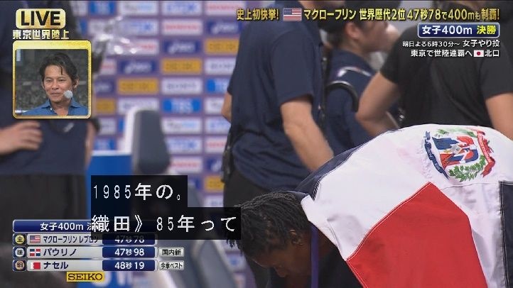 - 世界陸上中継の面白さの8割は誇張抜きで織田裕二だと思うわ