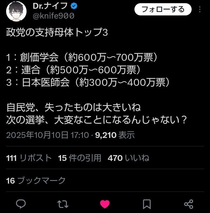 自民党、支持母体トップである創価の700万票を失いこれから逝く事が確定