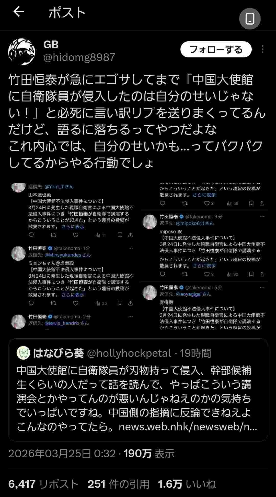 このアホは中国大使館がどこにあると思ってんだ? - 120 : 2026/03/25(水) 17:44:32.900 ID:B1iJThIUS