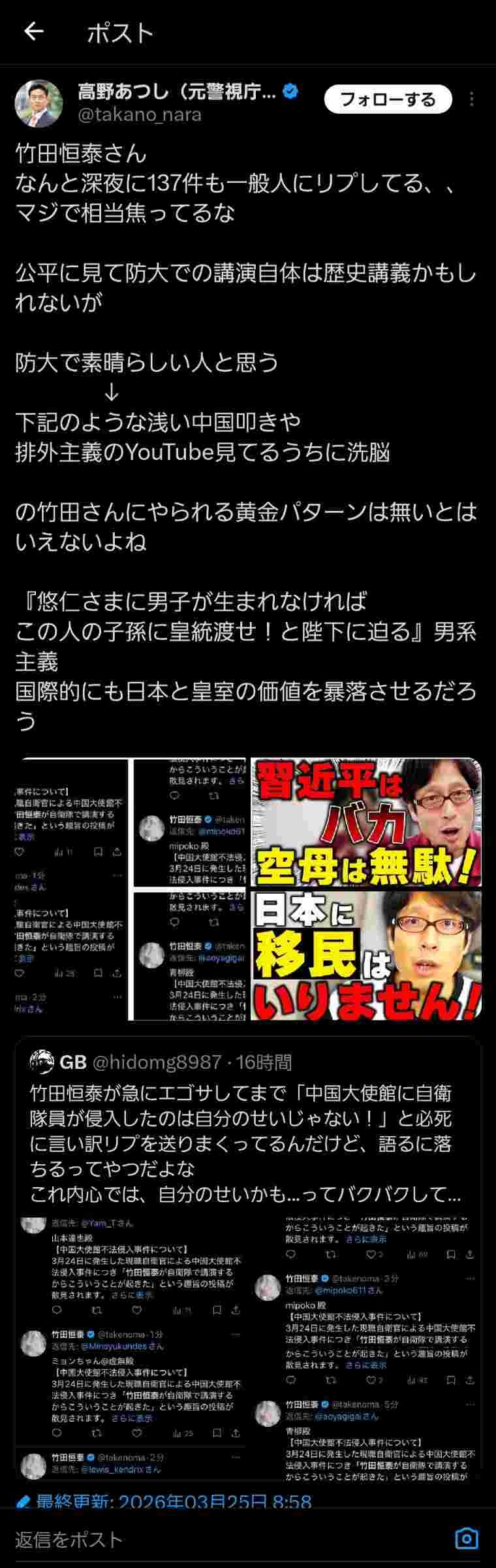 ってなってるから中国への謝罪はできない - 17 : 2026/03/25(水) 17:22:53.790 ID:XBxWYZFW9