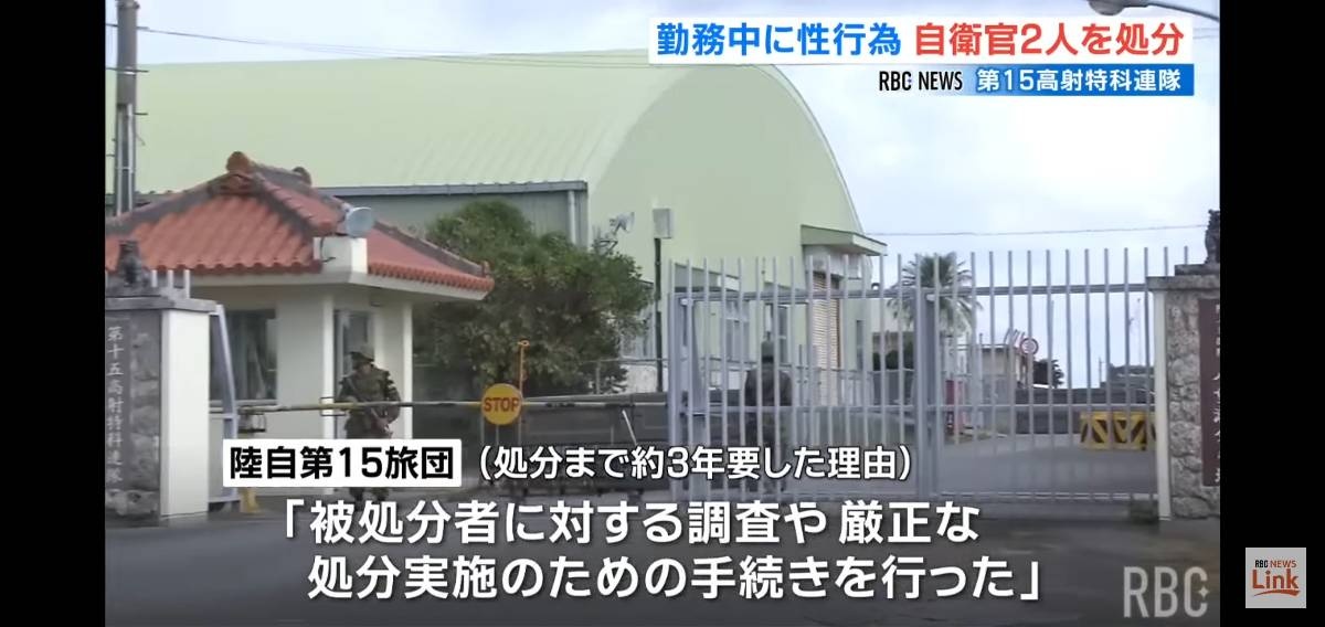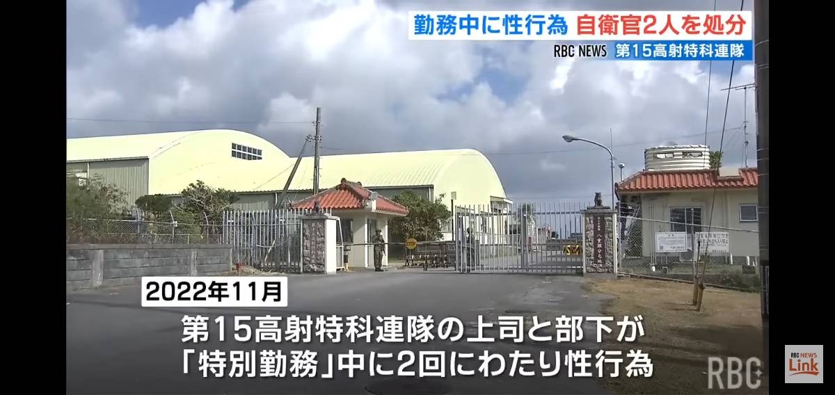陸上自衛隊第15旅団によりますと2022年11月、沖縄本島の八重瀬分屯地に本部を構える第15高射特科連隊所属の上司と部下が、当直勤務などの「特別勤務」中に性行為に及び、その3日後の特別勤務中に再び性行為を行いました。