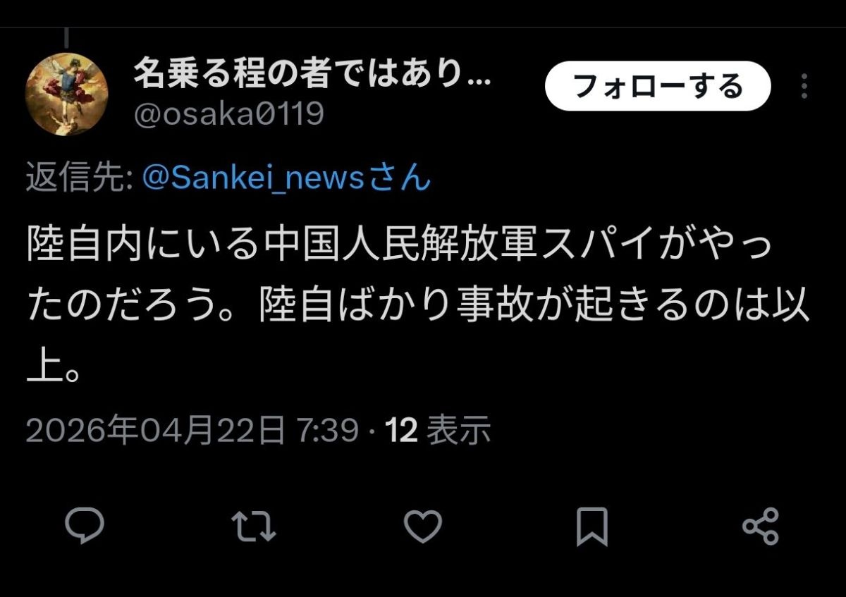 自衛隊を無能扱いするのが愛国なんか? - 34 : 2026/04/22(水) 07:52:54.777 ID:5Bxkz26ut