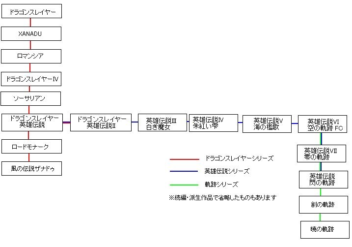 枝からさらに枝が伸びていくスタイルドラゴンスレイヤー→英雄伝説→軌跡
