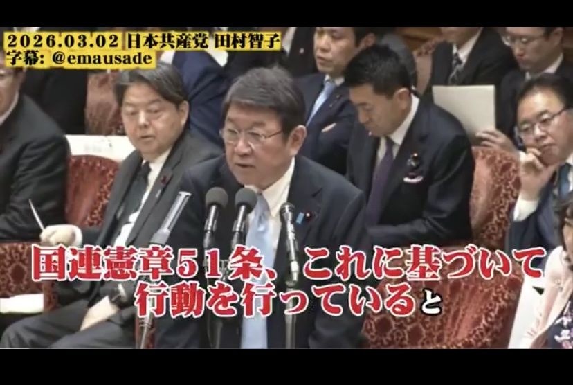 茂木外務大臣「アメリカとイスラエルは国連憲章と国際法に則り軍事行動している」www