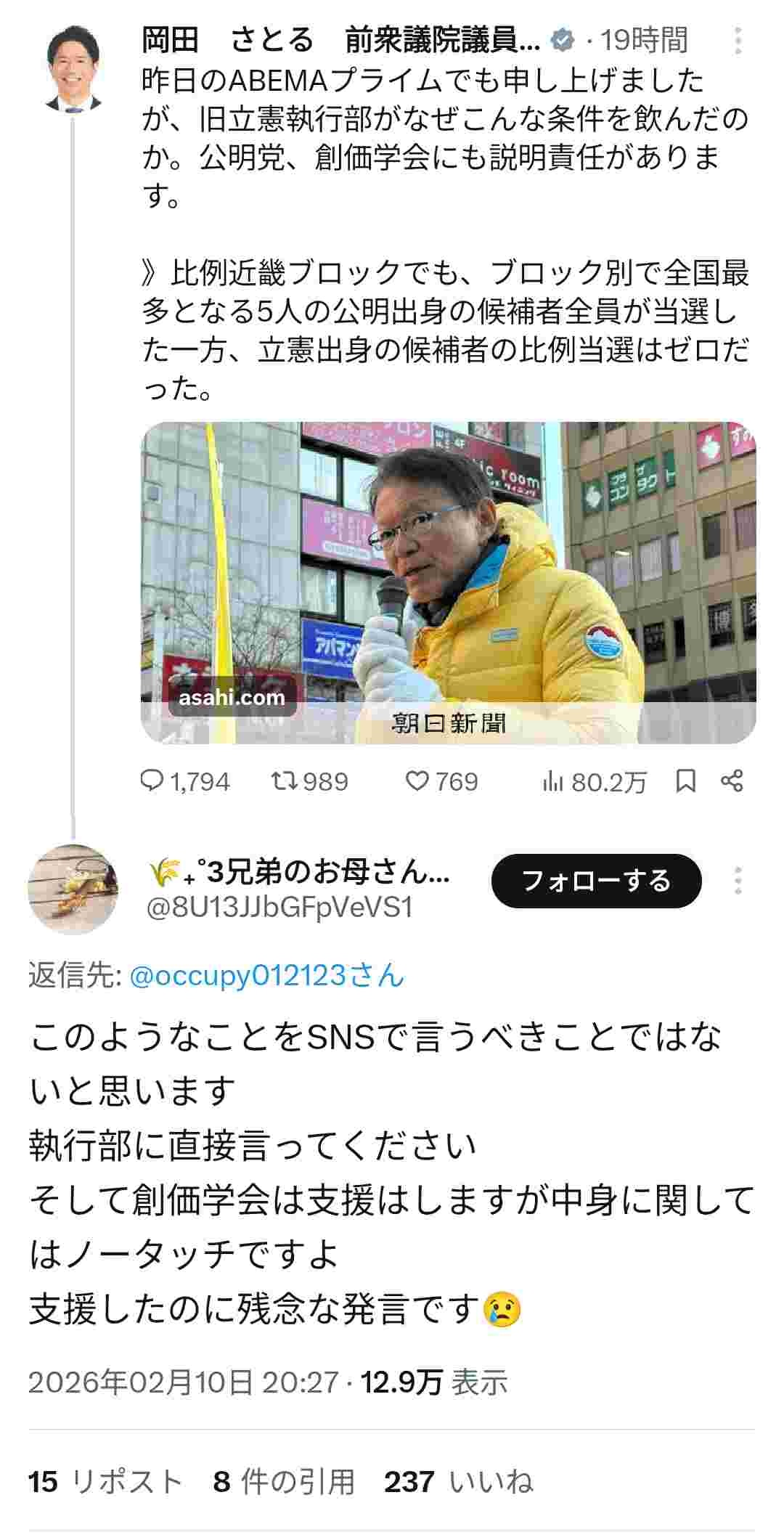 落選の中道議員「創価学会のせいで立憲が崩壊した」