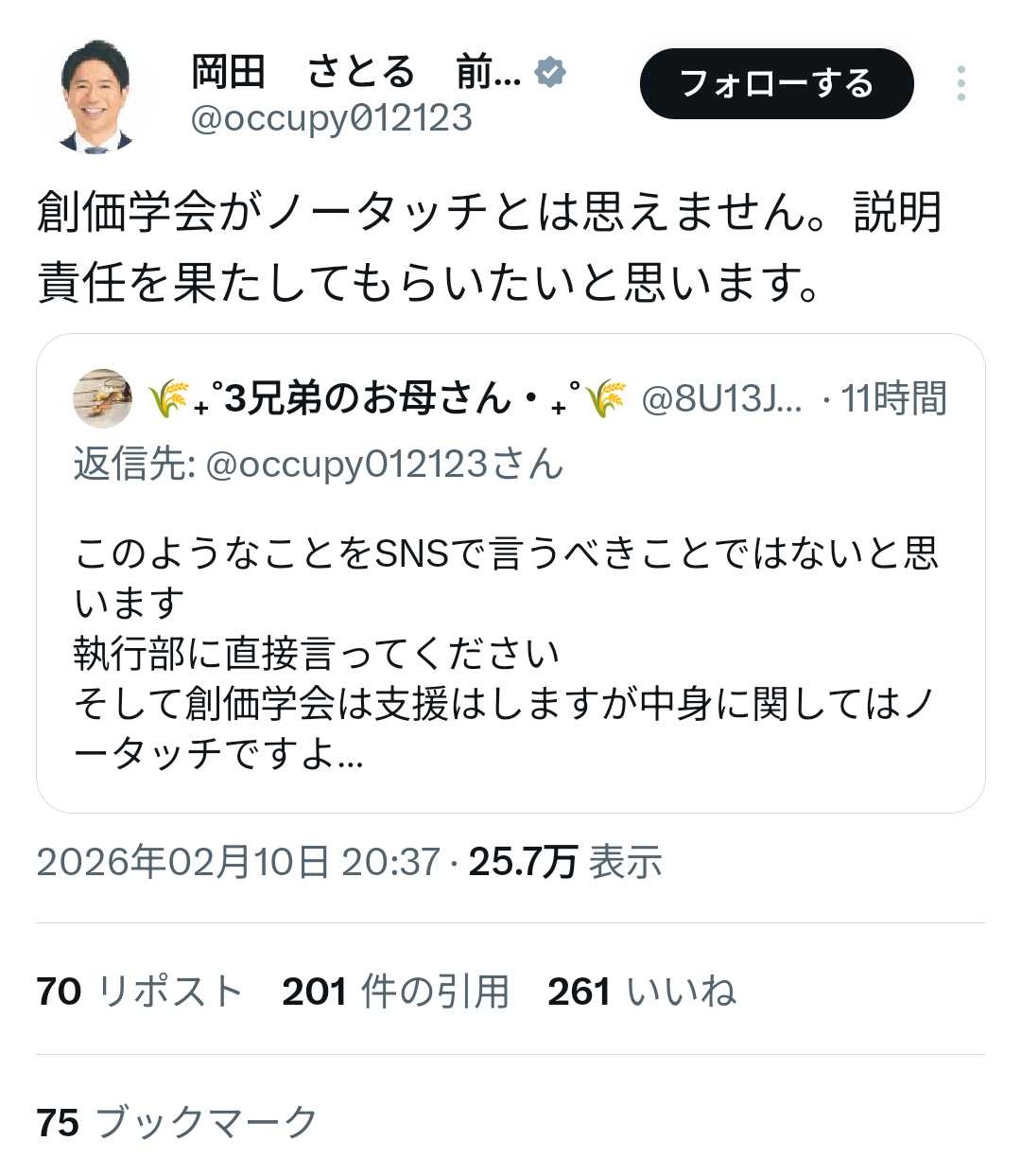 単純に自民が強かっただけなのに、負けたら創価のせいってクソすぎやろ