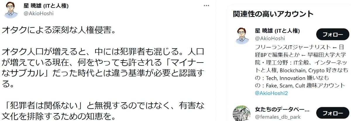 - 暇空レベルの自称オタク実態ニワカな見解だな