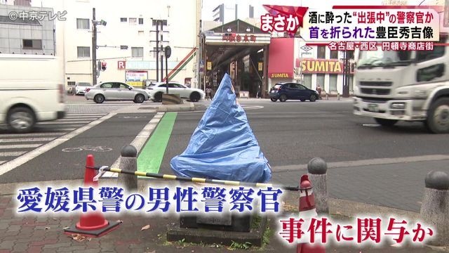 名古屋市西区にある豊臣秀吉の像。今年8月、首が折られているのが見つかりました。警察は愛媛県の警察官を書類送検する方針です。