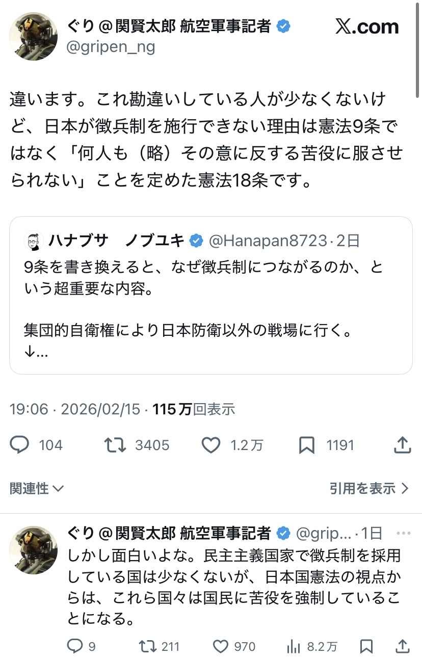 この3つが削除されたらどうなんの徴兵されるの? - 83 : 2026/02/17(火) 16:35:38.95 ID:rOn8EWoM0