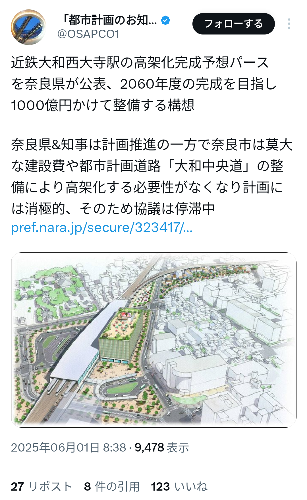 近鉄大和西大寺駅、大型再開発へ「安倍首相がケツ丸出しで撃たれた場所というイメージを刷新したい」