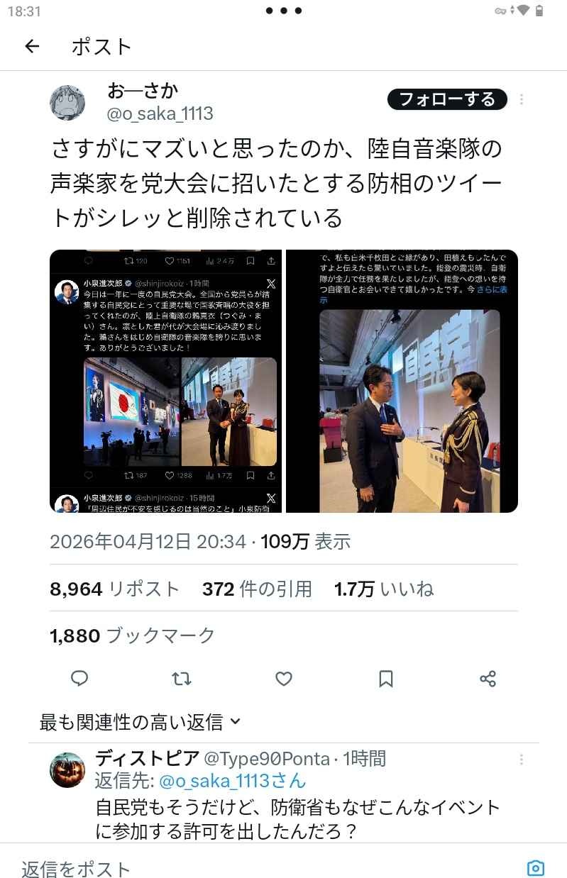公務員の中でも特に政治的中立性が要求される自衛隊でこれは不味い - 45 : 2026/04/13(月) 18:53:36.083 ID:n7F8SQZDn