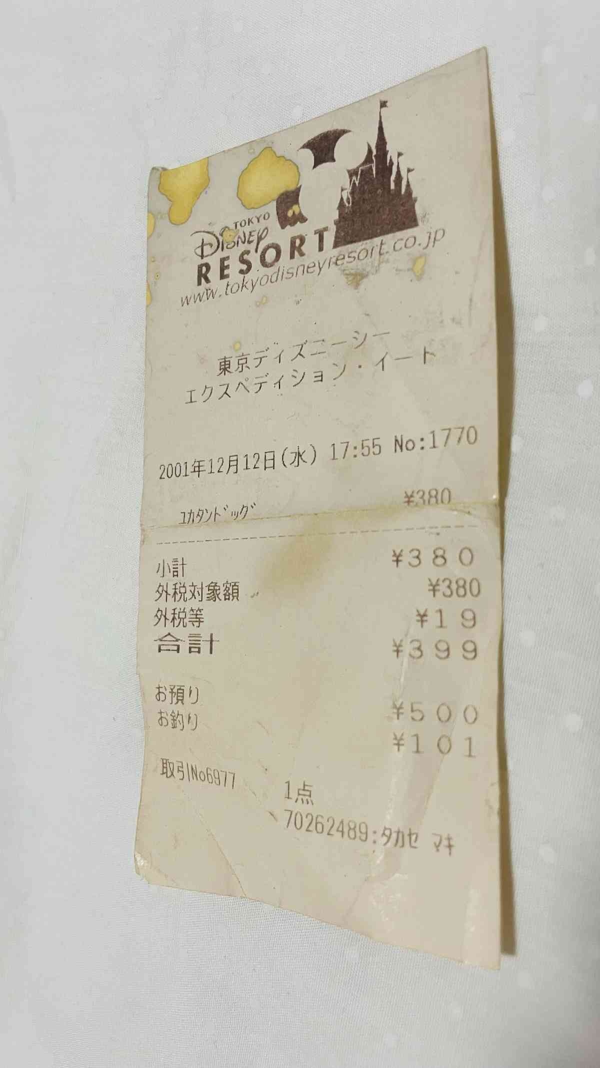 部屋掃除してたら少し昔のディズニーシーのレシート出てきたwww