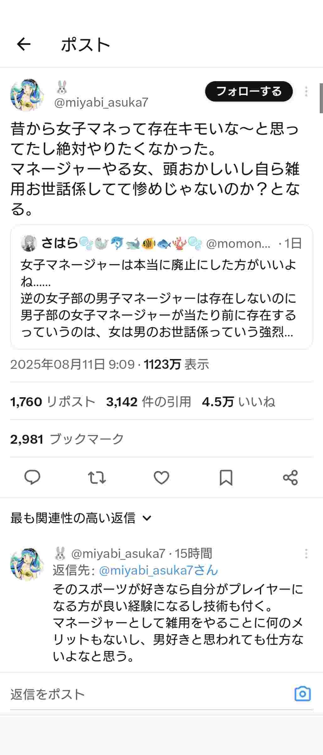 - まあ仮に女子部のマネージャーやる男の子とかいたら