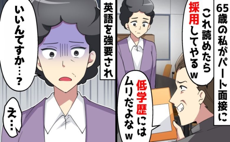 面接官「65歳のおばさんじゃねぇ…この英語読めたら採用しますよ」婦人(65)「それでもいいんですか?」面接官「!?」