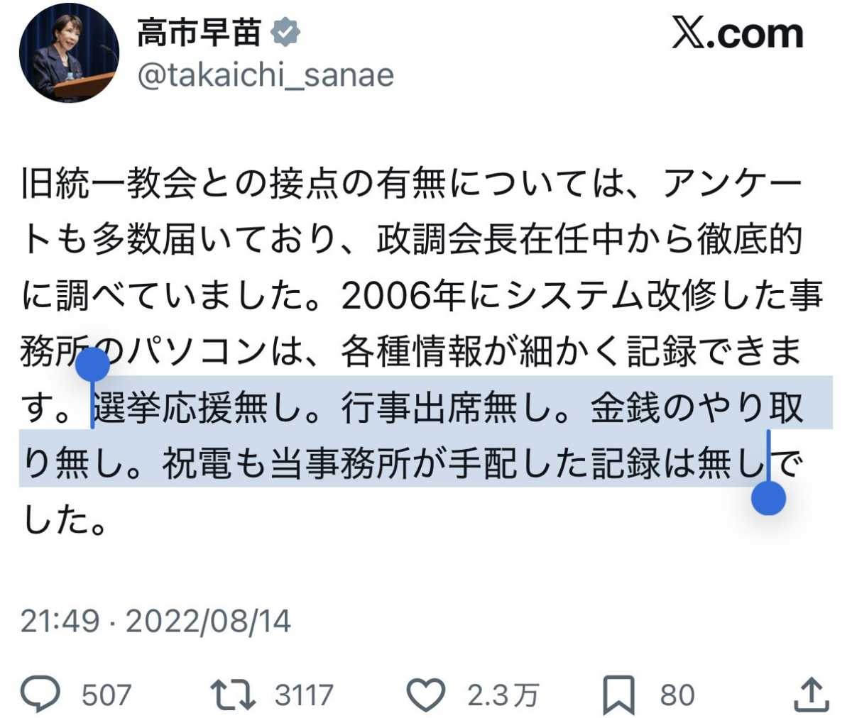 高市の統一教会パー券隠蔽問題、ガチで𝕏で炎上が収まらないwww