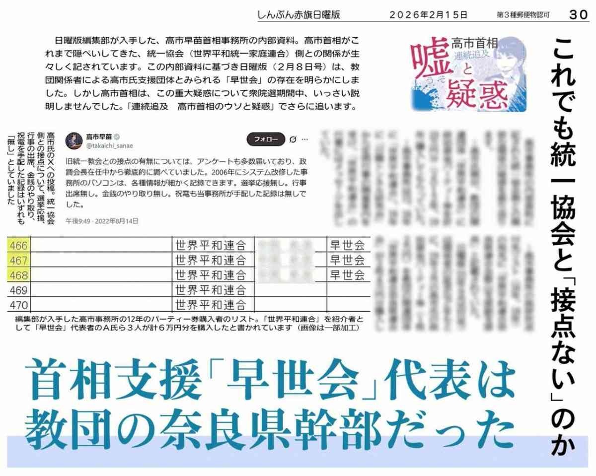 まあこの側面があって赤旗側は統一問題になると高市批判とは別の次元のバイアスが入ってるからどう評価していいかはなんともいえん