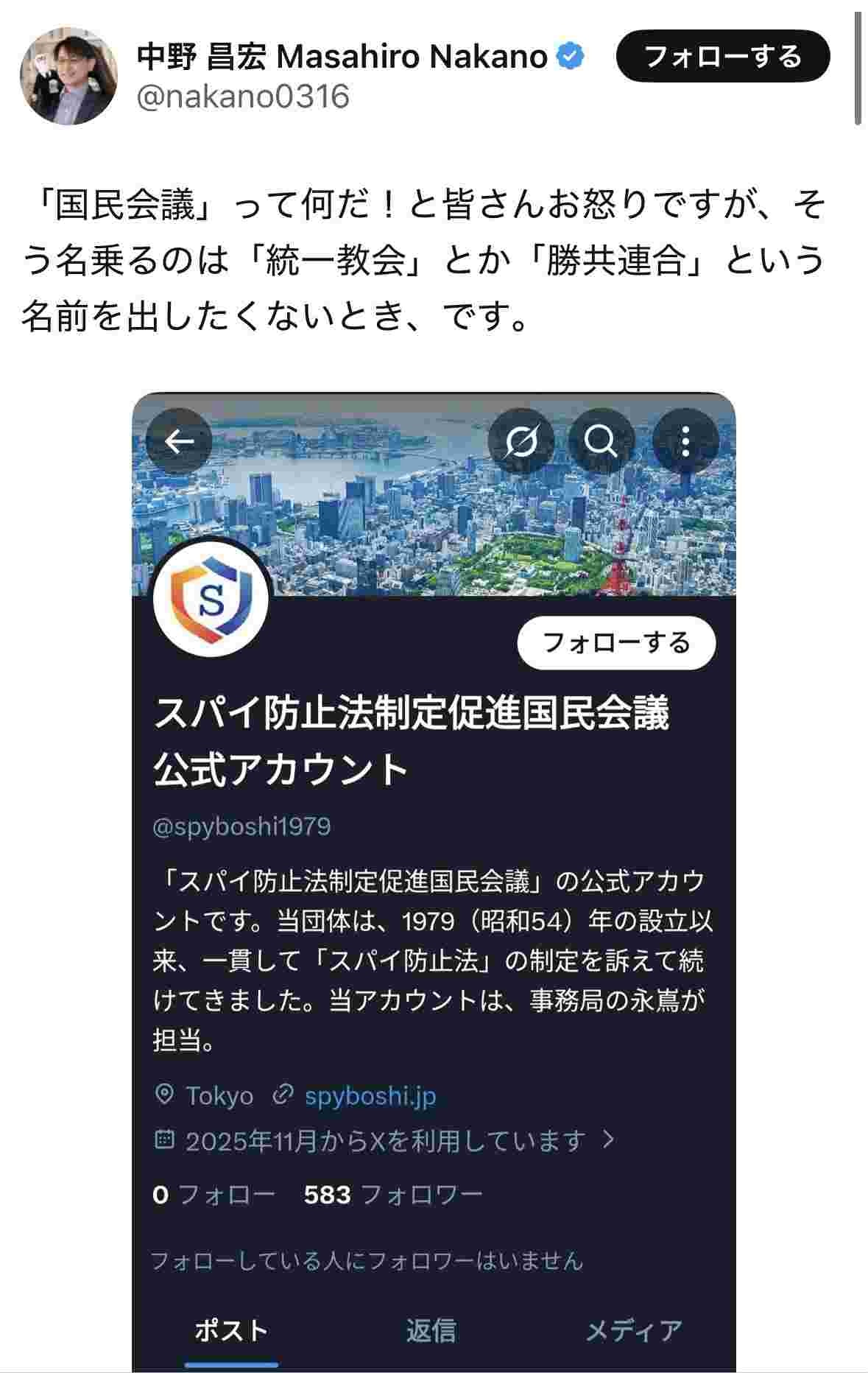 - スパイ防止法制定国民会議か
