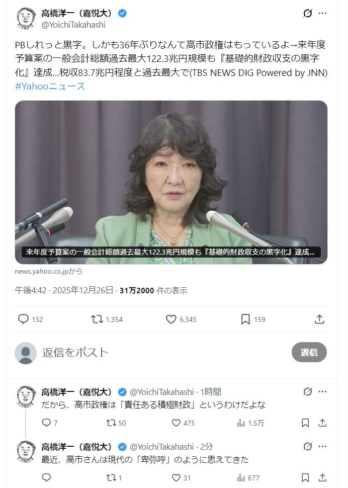 高橋洋一「最近、高市さんは現代の「卑弥呼」のように思えてきた」