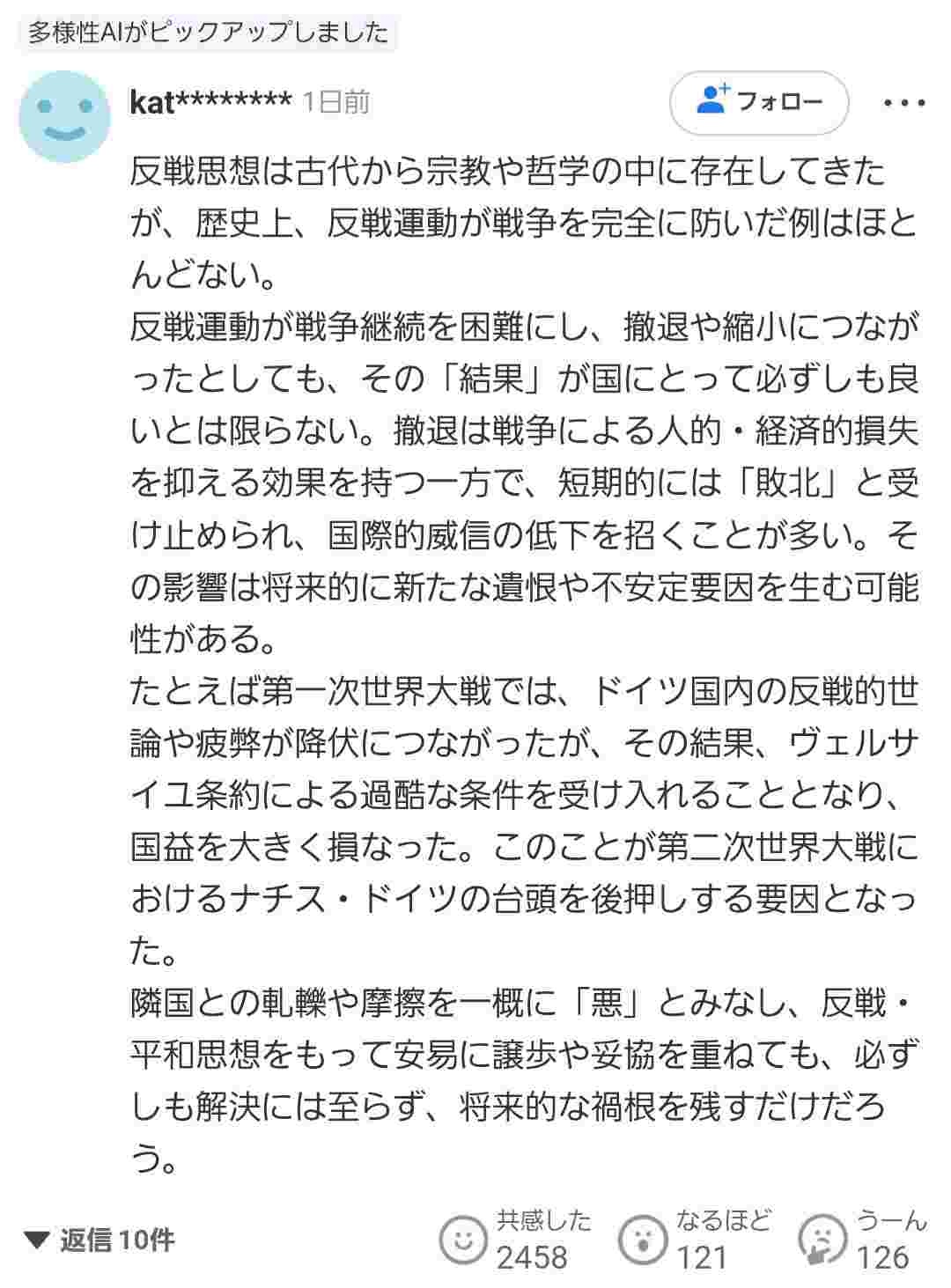 国民もそう思ってるぞ反戦叩きに大量の共感した!がつく戦争国家やからな