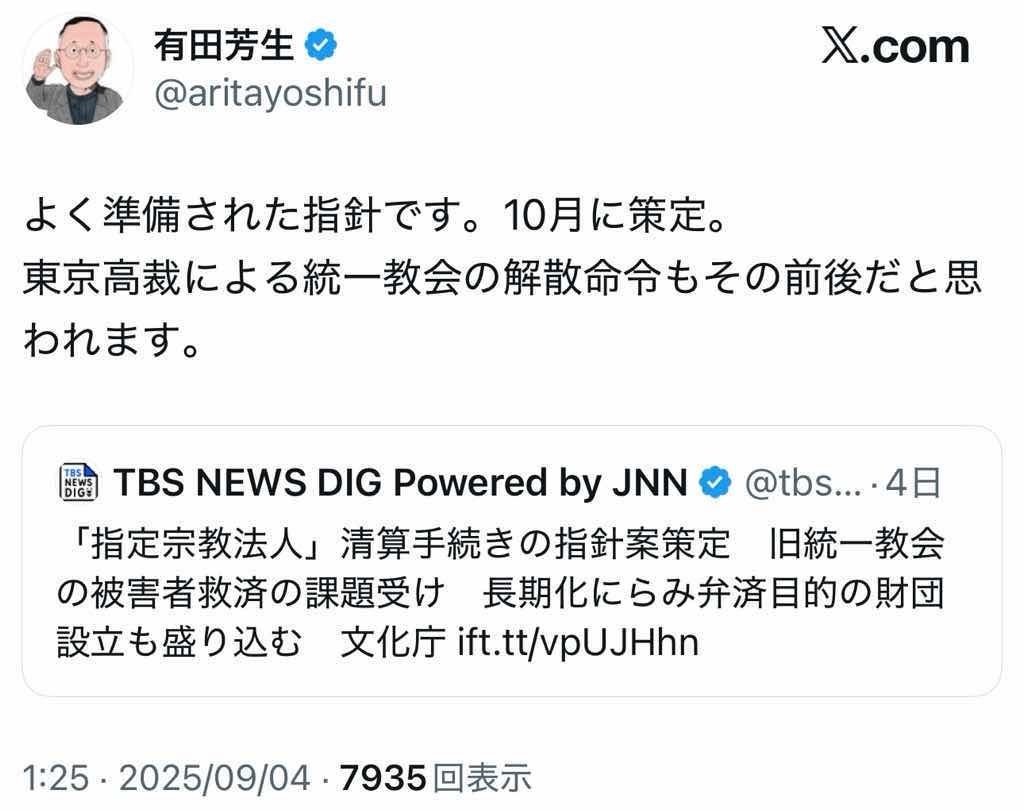 10月 統一教会 解散命令確定 効力が生じ 宗教法人格を失う😭