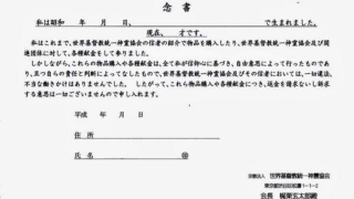 嫌儲統一教会が物品販売の際信者に書かせる念書がこれ