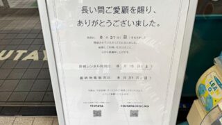 嫌儲【昭島市】「TSUTAYA 昭島店」8月31日をもって約30年程の歴史に幕 店にも正確な開業日を示す資料はないほどの老舗