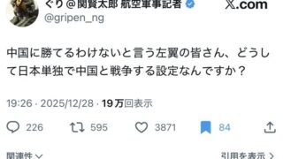 エッヂ愛国者「左翼さぁ、日本単独で中国と戦争するわけないだろw」←10万いいねwww www