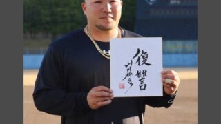 エッヂ山川穂高さん、来季を表す言葉として「復讐」と色紙に書く