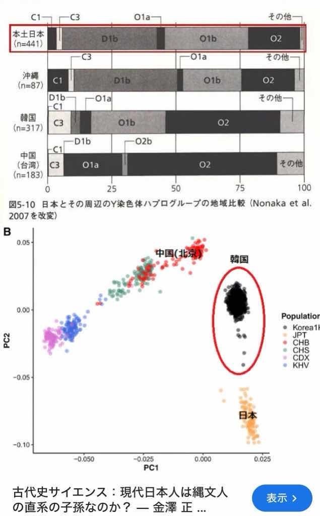 DNA調査で 縄文人D2遺伝子がある日本人と韓国人 違うと判明 韓国人はモンゴル中国の混血が進んだ