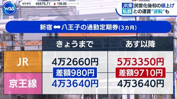 JR東日本、歴史的値上げ!!! 新宿⇔八王子の通勤定期は私鉄との差額が約1万円!!!
