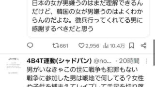 エッヂ🇰🇷ま●こ「戦争は男のせいだから徴兵制は妥当だろw」